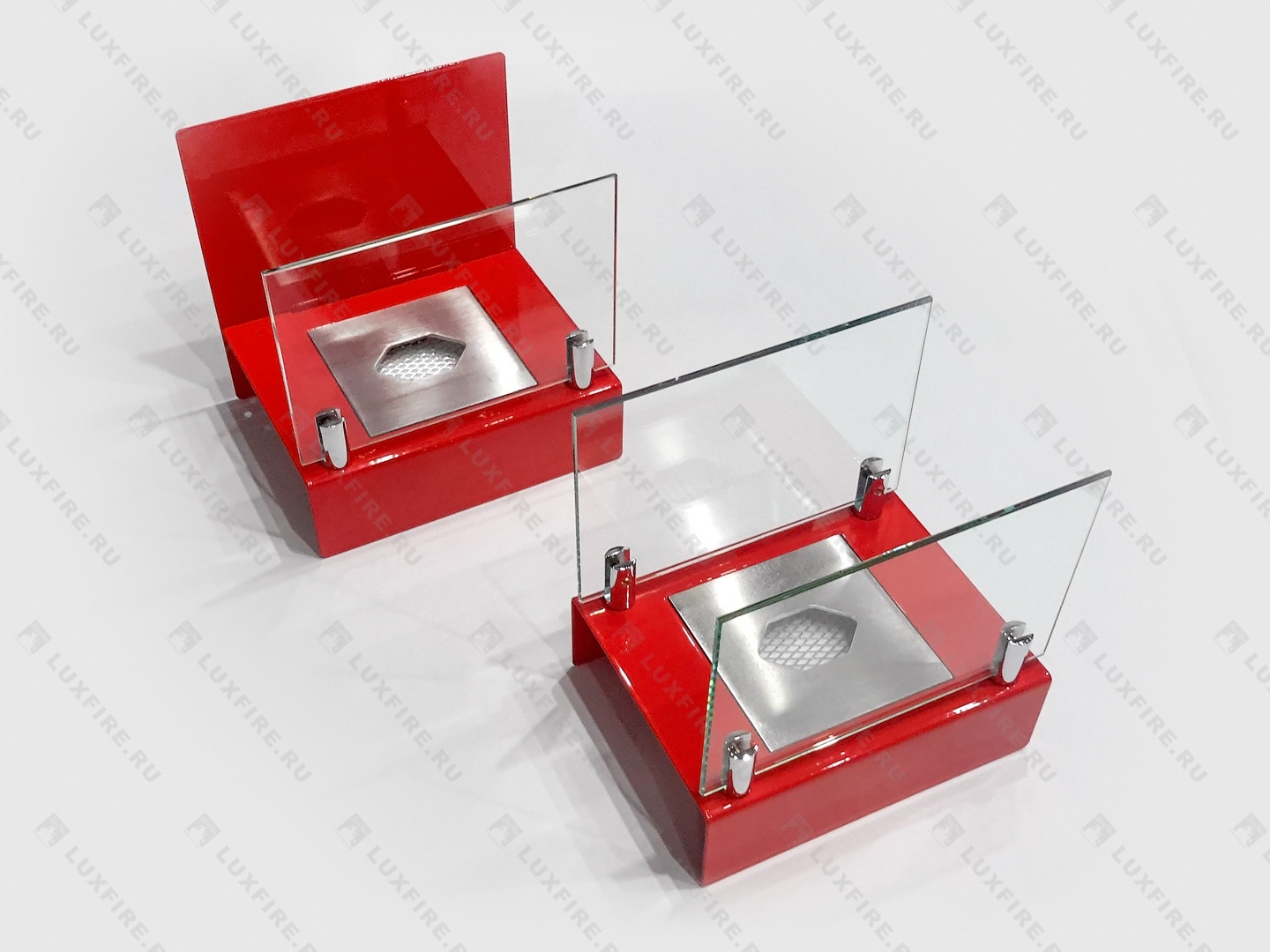 Представляет собой сборную модель из металлического корпуса и задней стенки с топливным блоком Lux Fire 100-1 огражденным с двух сторон защитным стеклом прямоугольной формы на дистанционных держателях размером (ВхШхГ): 120х180х4 мм