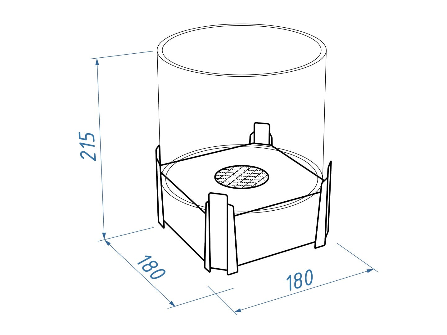 Представляет собой металлический внешний корпус с встроенным топливным блоком Lux Fire 150-2 на декоративных ножках в виде Скорпиона. Огонь ограничивается стеклянным закаленным плафоном диаметром 180 мм.Среднее время горения 3 часа